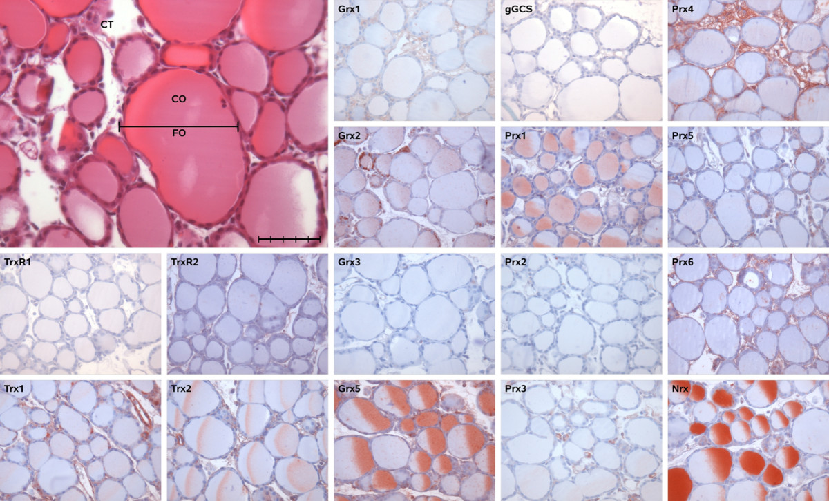 CO, colloid; CT, connective tissue; FO, follicle. Objective: 25x, scale bar: 50 µm.